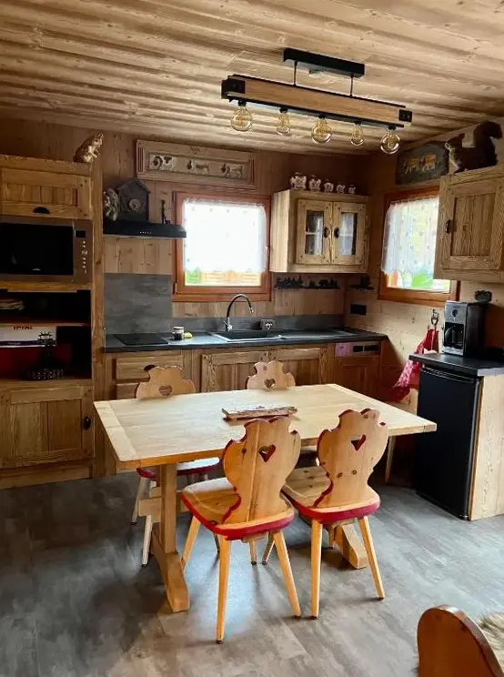 Chalet des Moineaux ofrece una estancia cómoda y acogedora en un entorno tranquilo. Este chalet cuenta con cocina completa, habitaciones familiares, terraza y balcón para disfrutar al aire libre. Cuenta con baño privado y vista panorámica que complementan su espacio funcional. Además, dispone de estacionamiento gratuito y aparcamiento disponible.